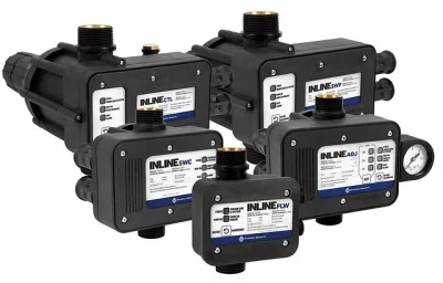 Franklin Electric Inline Controls Pressure Boosting System pairs with submersible or surface pumps up to 20 amps (around 3 hp), providing or boosting water pressure often without requiring an additional bladder tank.