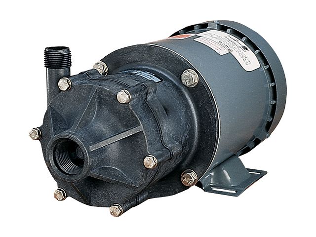 These magnetic drive pumps have a totally enclosed fan-cooled (TEFC) motor for use in dirty and damp environments. The impeller is turned with magnets to eliminate the possibility of seal wear and leakage for longer service life and greater return on investment. The TE-5.5-MD-HC can handle temperatures up to 180 °F (82.2 °C). It’s able to pump 1500 gallons per hour at 5′ head.